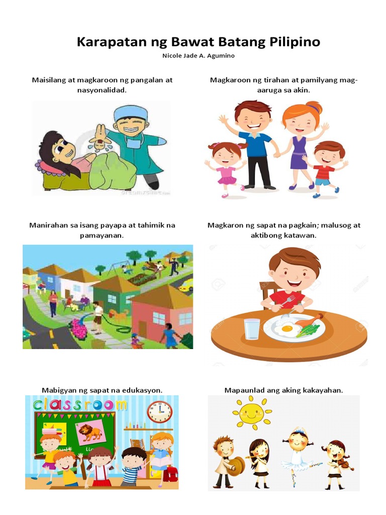 Ayon sa United Nations UNICEF ang sumusunod ay ang mga. Tapusin ang aralin sa pagbibigay-diin sa nabuong kaisipan na. The child has the right to eat to become healthy and strong.